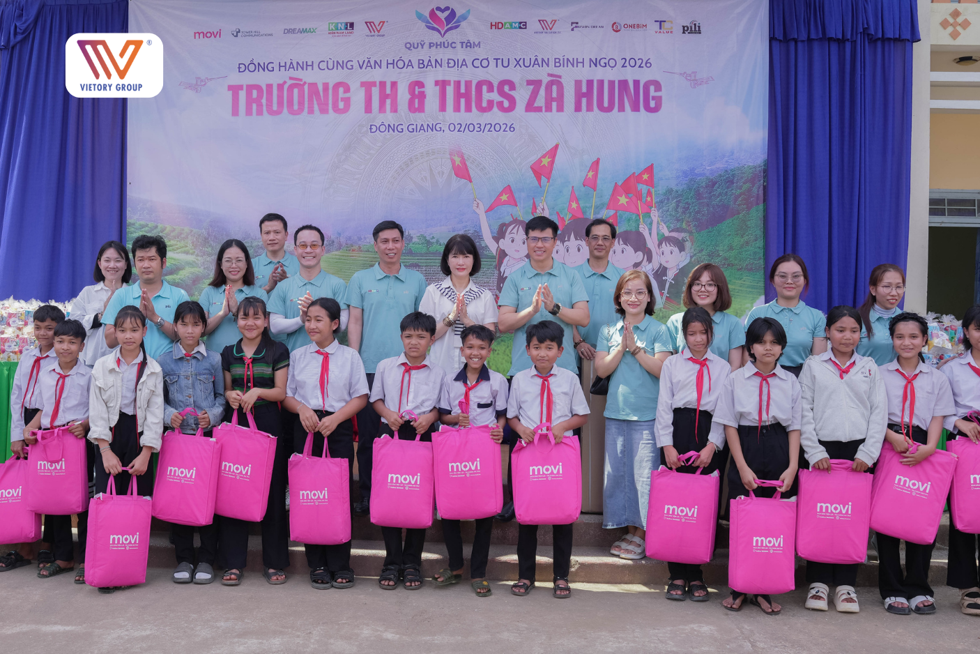 Trong không khí ấm áp của xuân Bình Ngọ, Vietory Group cùng Quỹ Phúc Tâm và các đơn vị đồng hành đã vượt hơn 70km đèo dốc để đến với xã Zà Hung, huyện Đông Giang tổ chức chương trình “Đồng hành cùng Văn hóa Bản địa Cơ Tu xuân Bính Ngọ 2026”. Đây không chỉ là một chương trình thiện nguyện, đây còn là lời cam kết của Vietory Group trong việc đồng hành cùng giáo dục và di sản văn hóa dân tộc.